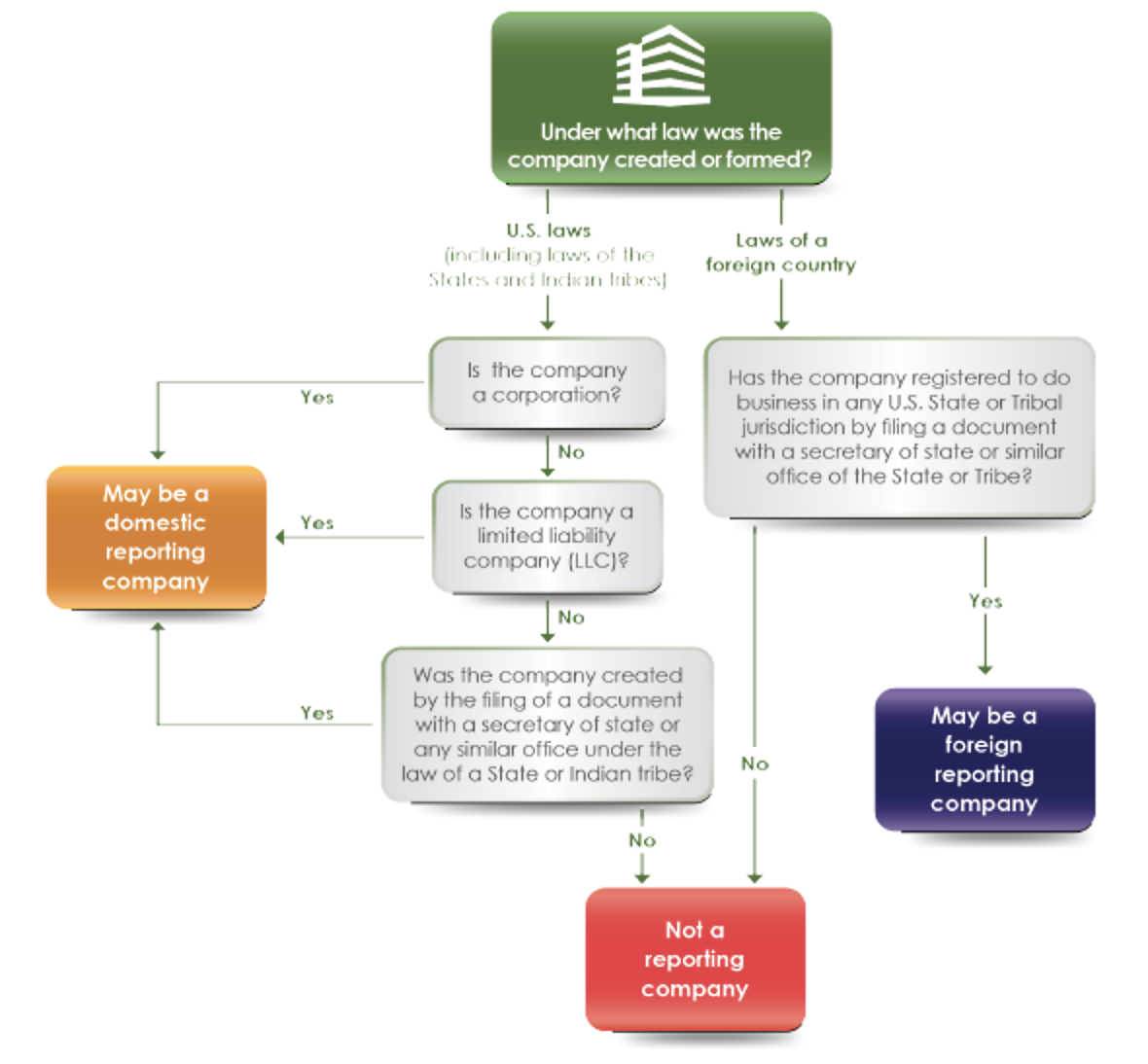 The following chart shows how to analyze whether your company is a "reporting company":